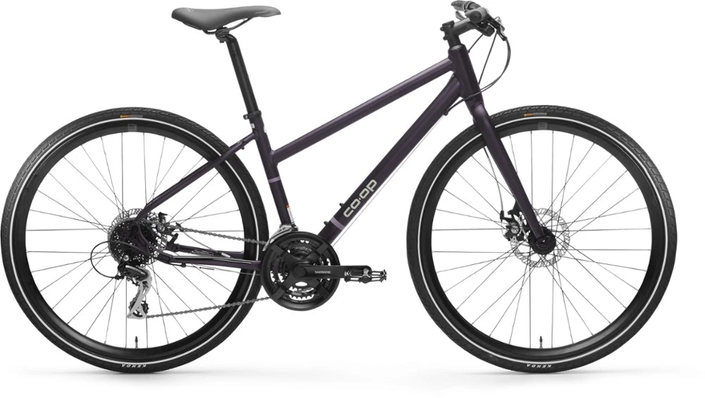 Made for urban cruising, the Co-op Cycles CTY 1.1 Step-Through bike features a low crossbar for easy mounts and dismounts, a flat handlebar for a heads-up ride and a versatile 3×8 drivetrain.