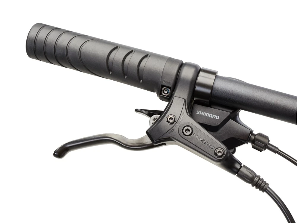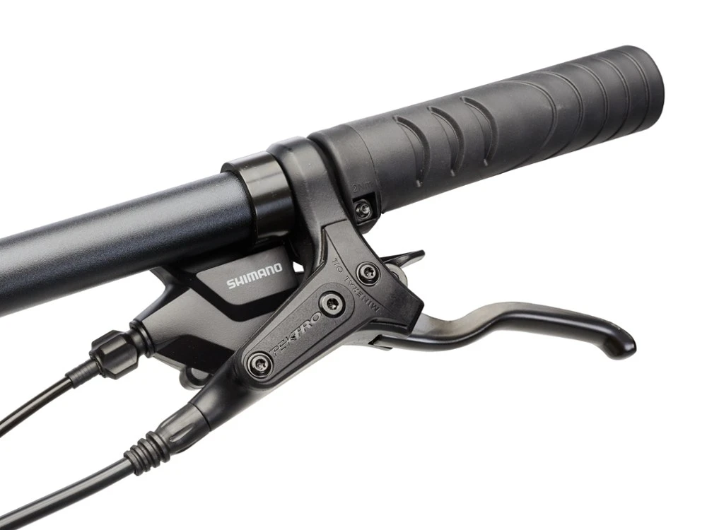 - Tektro hydraulic disc brakes provide sure stopping power in variable weather