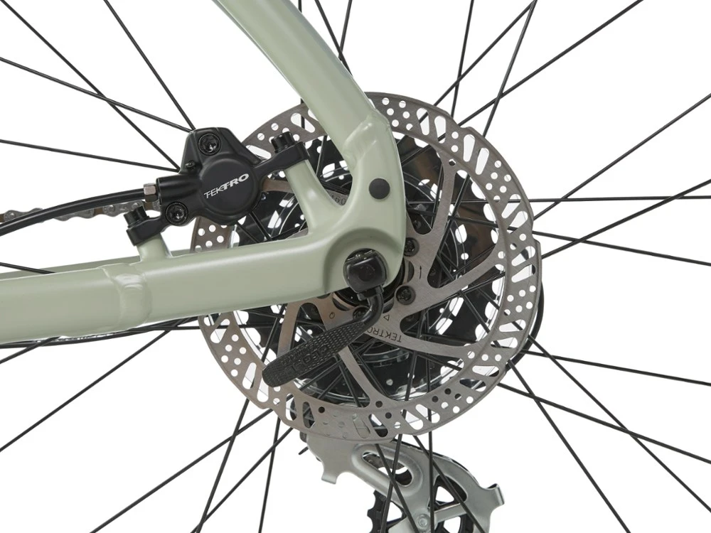 - Tektro hydraulic disc brakes provide sure stopping power in variable weather