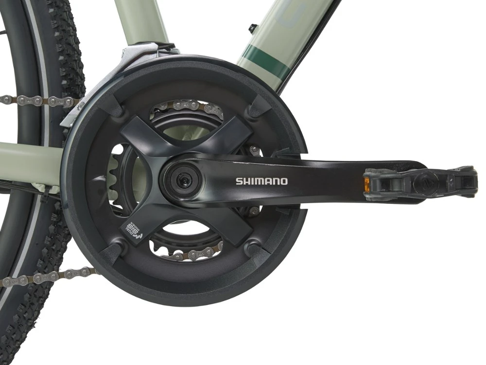 - Double chainrings simplify front shifting and provide plenty of gears for flats or hills