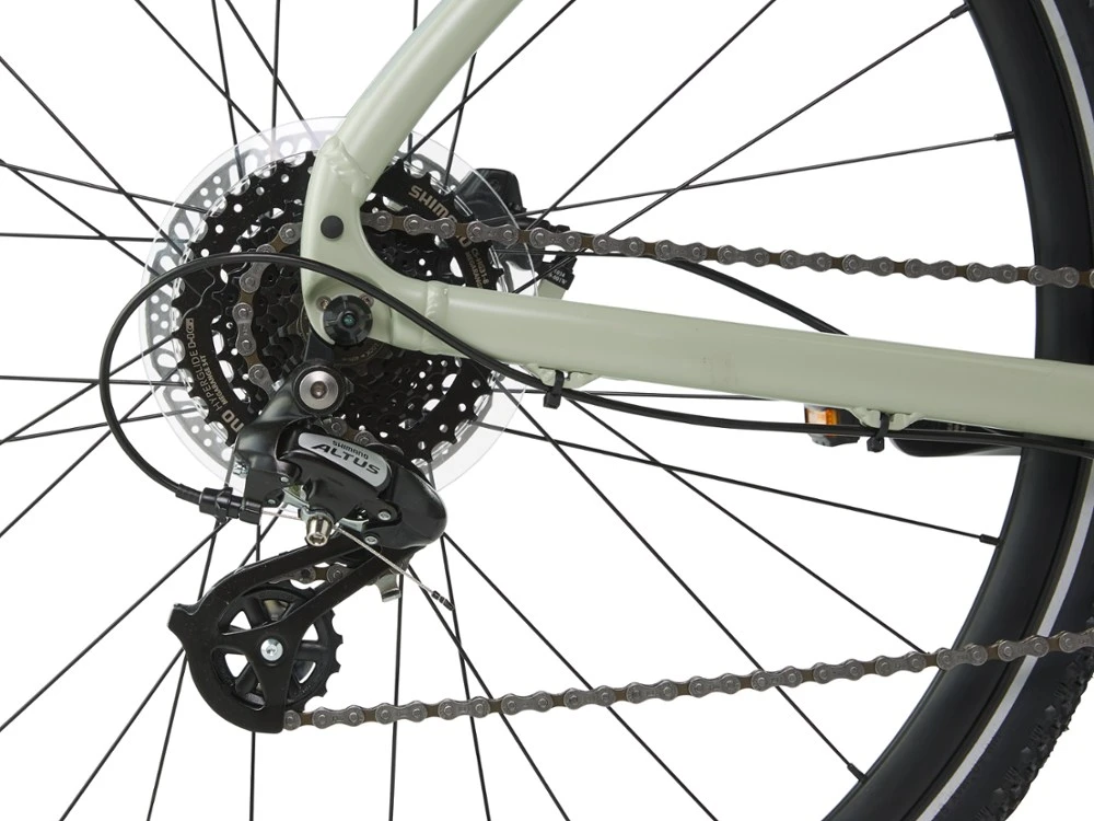 Make the city your playground. The Co-op Cycles CTY 2.1 step-through bike has a shock-absorbing fork for pothole-filled roads and a 2 x 9 drivetrain for optimal options without complicating shifting.
