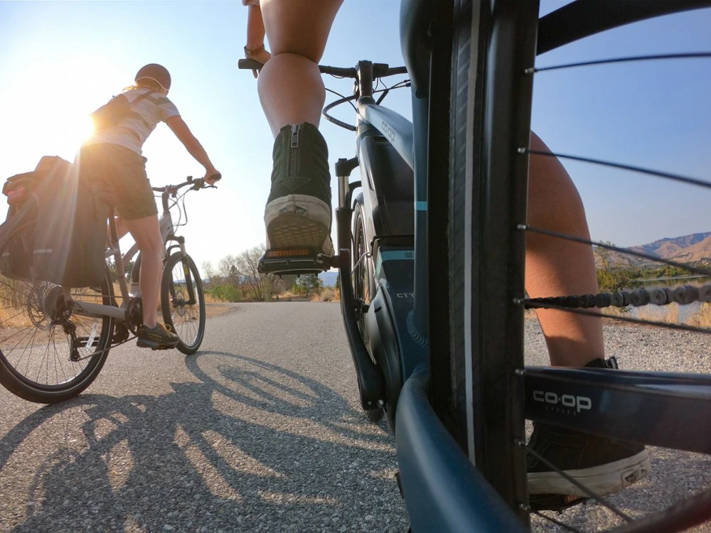 You’ll feel like you have quads of steel as you flatten hills, get a rush from rush hour and even roll down dirt roads to camp if you like, on the fast, nimble Co-op Cycles CTY e2.2 electric bike.