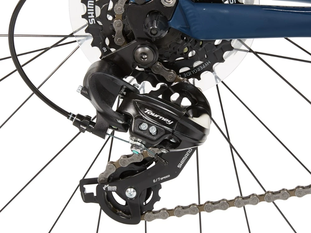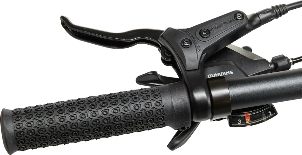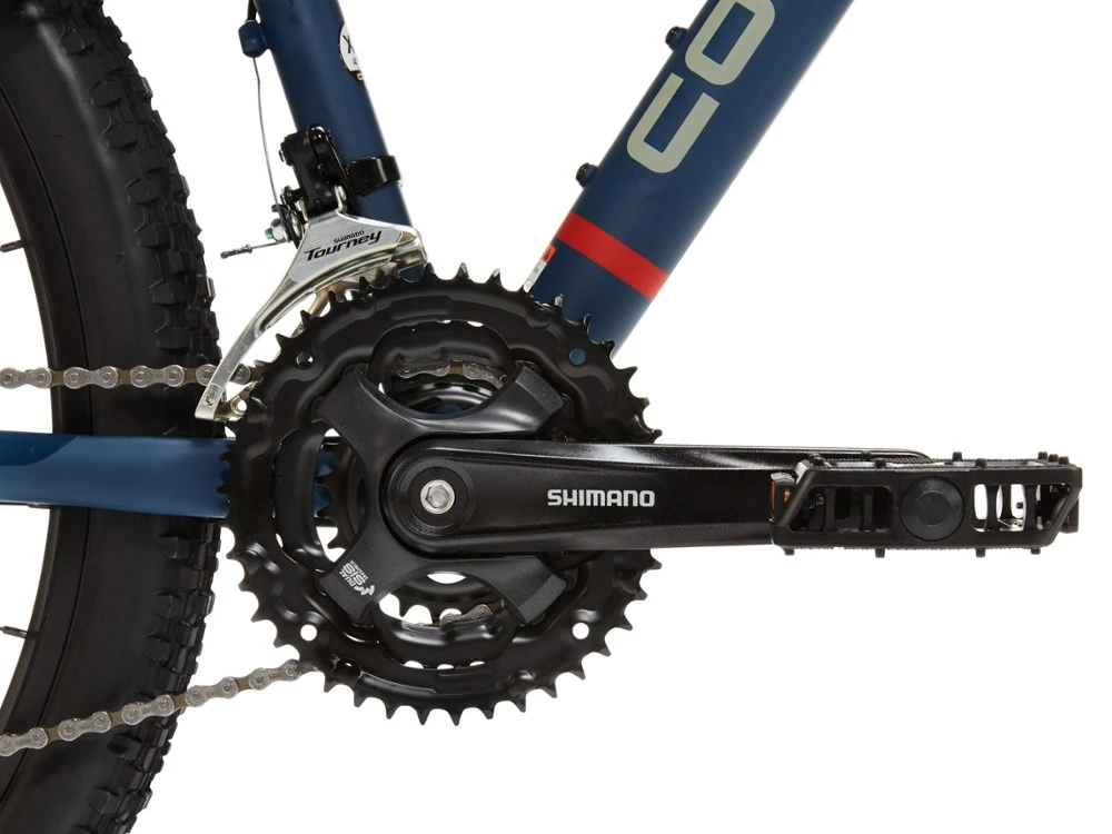- Shimano 3 x 7 drivetrain provides 21 gears for riders to conquer a variety of terrain