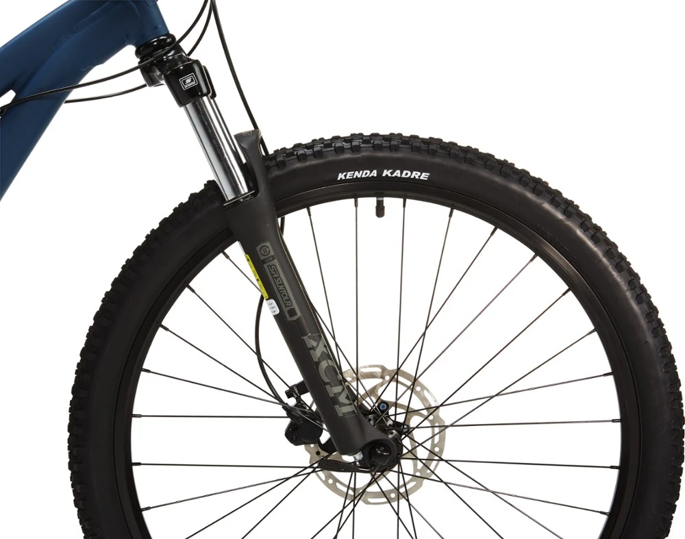 - SR Suntour suspension fork’s aluminum lower is lightweight and provides 100 mm of travel for a smooth ride