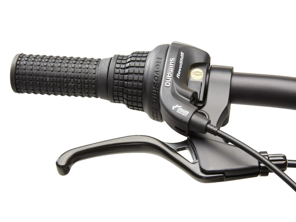 - 6-speed drivetrain is controlled with a single, intuitively easy-to-use Shimano RevoShift twist shifter; a flick of the wrist changes gears for easy pedaling