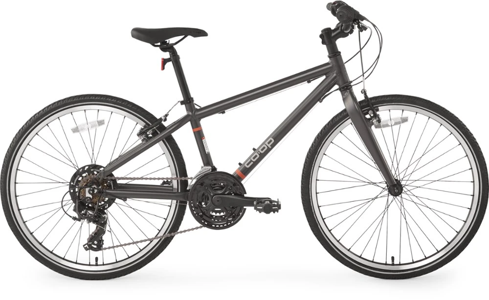 Not really a “kids’ bike,” the Co-op Cycles REV CTY 24 bike gives young riders all the performance of an adult bike, scaled down to match their size and designed to build their confidence and skill.