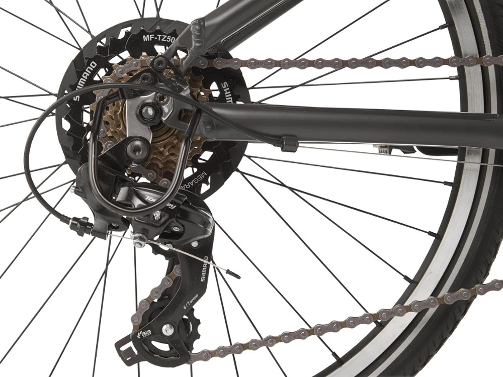 - Shimano drivetrain provides 21 versatile gearing options for hills, flats and rolling terrain