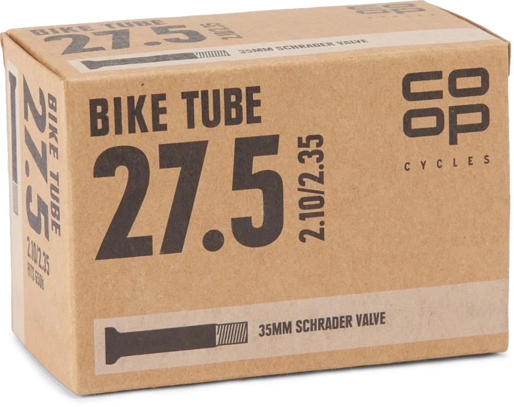 Our Co-op Cycles Schrader tube fits 27.5 in. wheels with 2.1-2.35 in. wide tires for fast replacement of your punctured or worn-out tube.