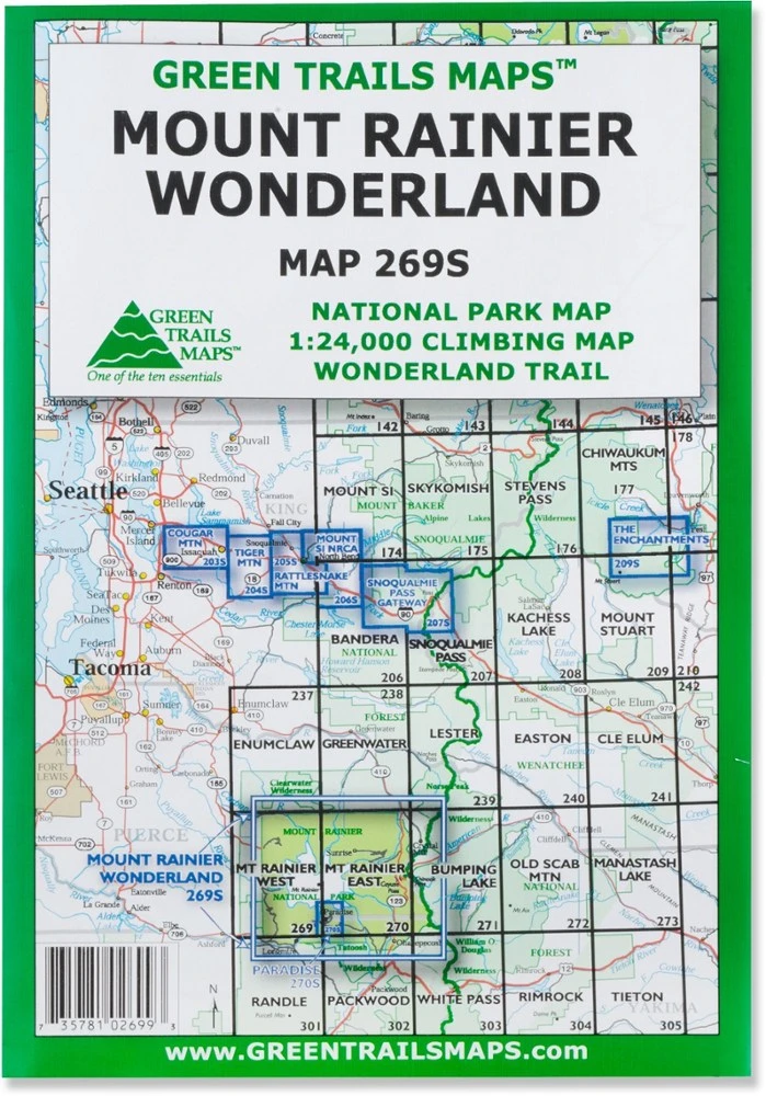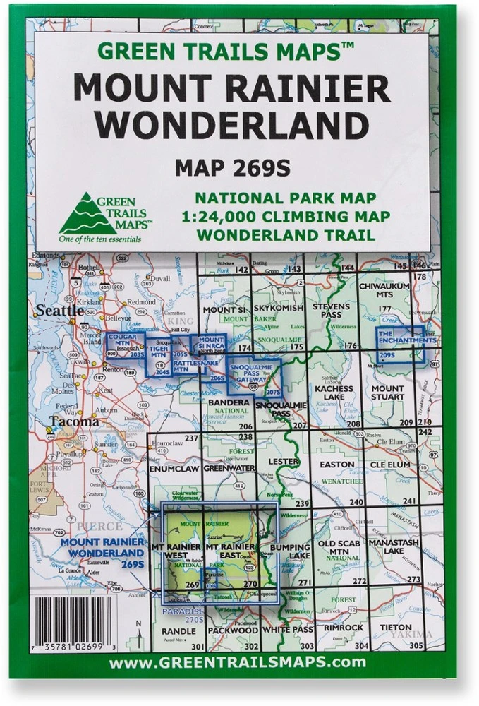 The Green Trails Mount Rainier Wonderland map offers a beautifully detailed topographic guide to Mount Rainier National Park and the famous Wonderland Trail.