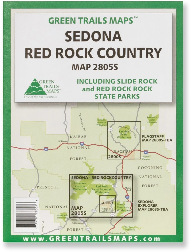 Ranging across the Sycamore Canyon, Red Rock Secret Mountain and Munds Mountain wildernesses, the Green Trails Sedona/Red Rock Country map (2805S) is a beautifully detailed topographic guide.