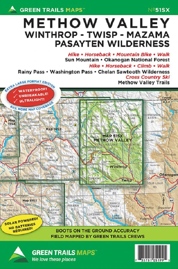 With so many multi-activity trails to explore from Sun Mountain to Methow Valley, Green Trails Methow Valley map (515X) gives you access to its expanded coverage with beautifully detailed topography.
