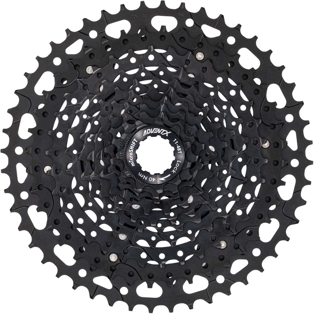 Sometimes less is more—the microSHIFT ADVENT X 10-Speed cassette has fewer cogs than 11- and 12-speed cassettes to keep it light, yet it still provides a massive 11–48T range for all-mountain riding.
