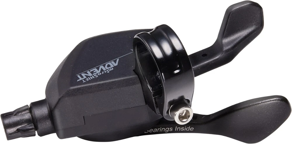 Making the drivetrain easy to control without a steep learning curve, the microSHIFT ADVENT Xpress Plus 9-speed right trigger shifter features separate index and thumb triggers for better ergonomics.