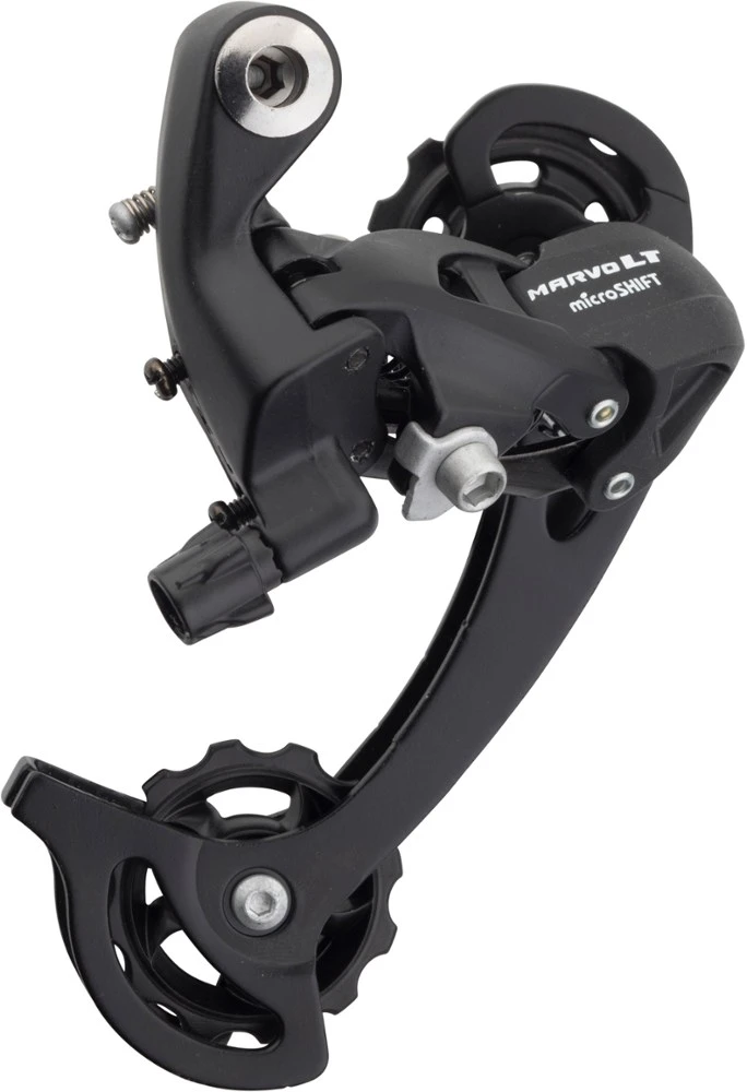 With a durable, well-finished construction that stands up to tough trails and long-distance tours, the microSHIFT MarvoLT M46 8/9-Speed rear derailleur ensures easy, smooth shifting.