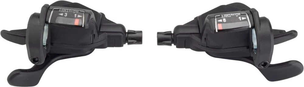 With an ergonomic design, optical gear indicators and light shifting, this 3 x 8-speed microSHIFT Mezzo Thumb-Tap shifter set is a great option whether you’re building a new bike or fixing an old one.