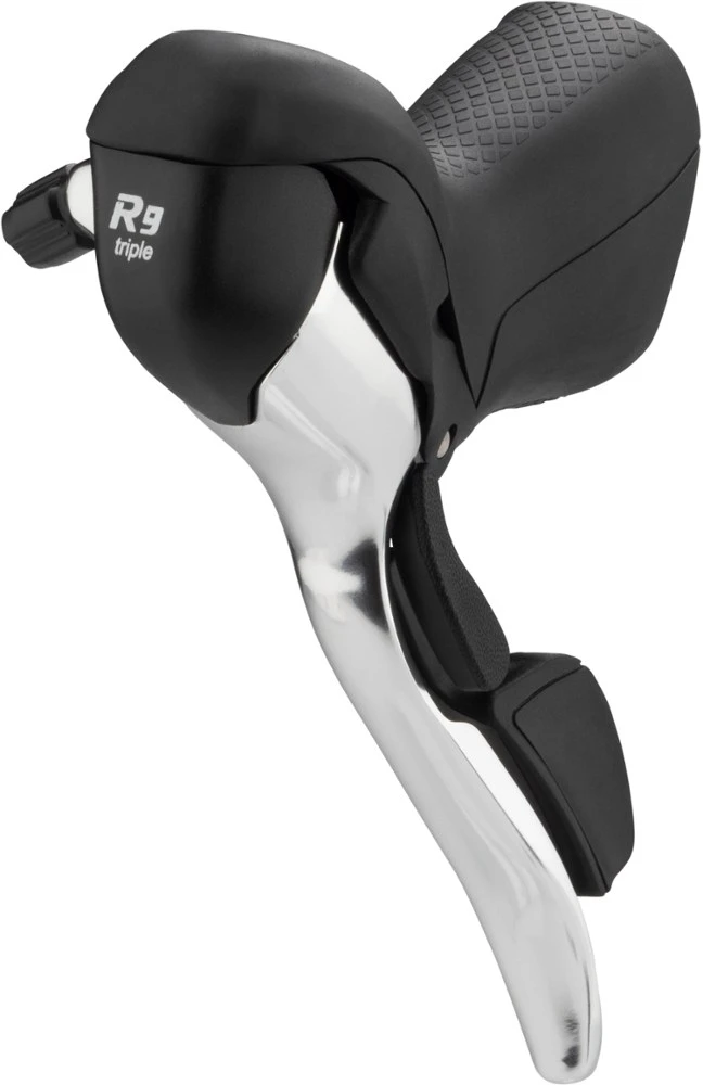 - Left shifter for road triple front derailleurs; right shifter for 9-speed road derailleurs; Shimano compatible
