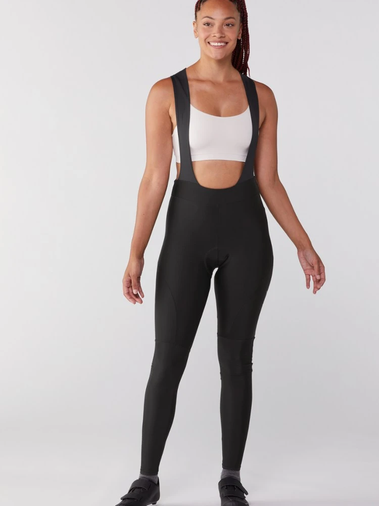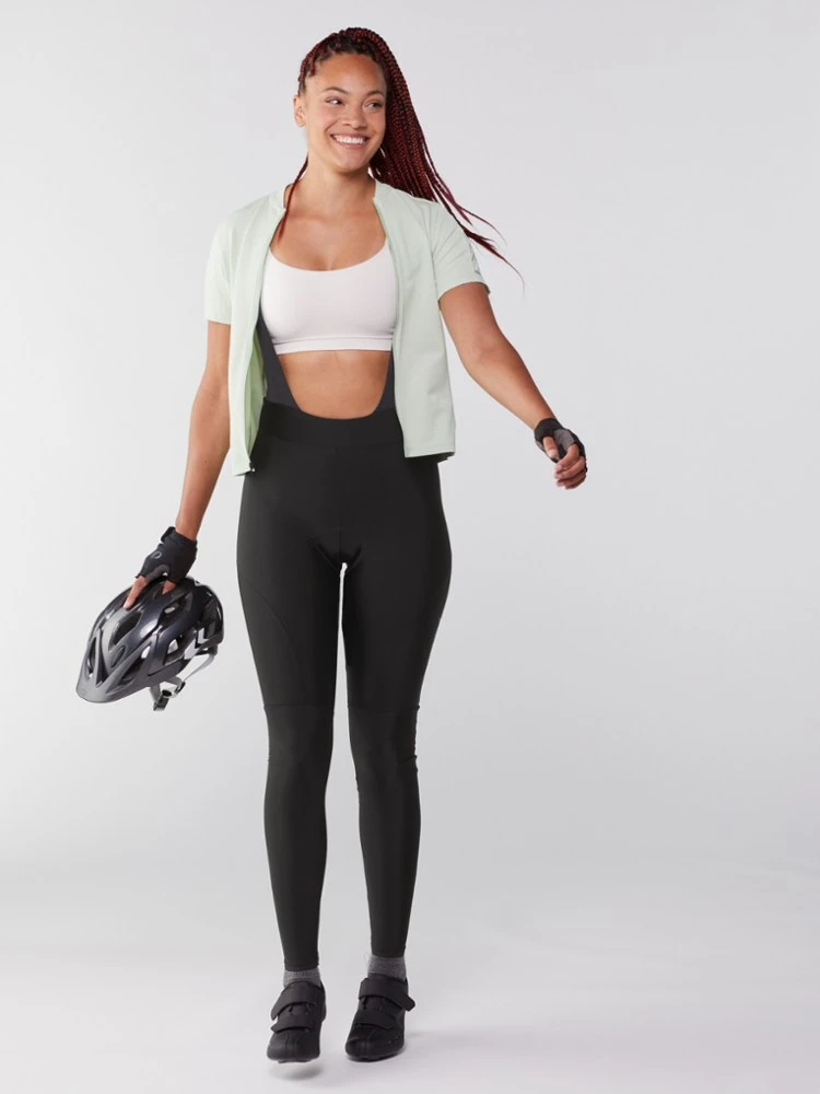 Keep warm while you train or commute on cold winter days. The women’s Rapha Core Winter Bib cycling tights have fleece on the legs for warmth—and they breathe well when you work up a sweat.