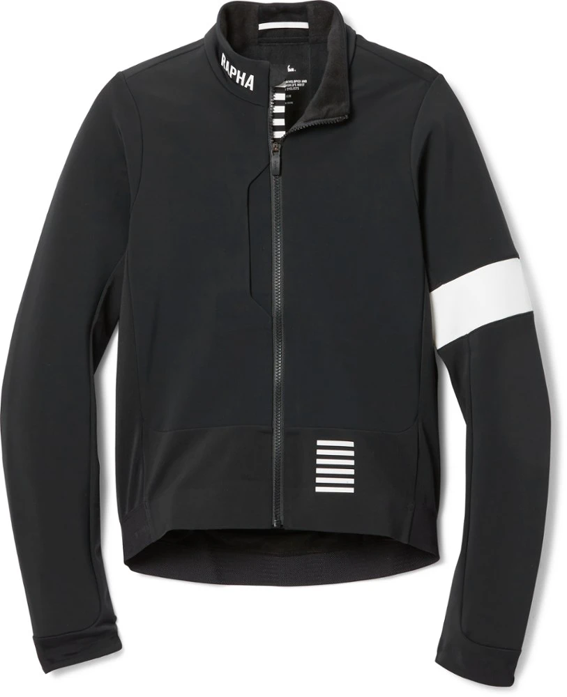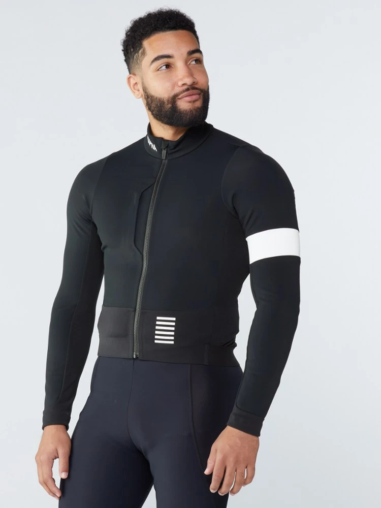 An insulating jacket for cool-weather racing and training, the men’s Rapha Pro Team Winter cycling jacket can be worn alone over a base layer or paired with a jersey to match conditions and tempo.